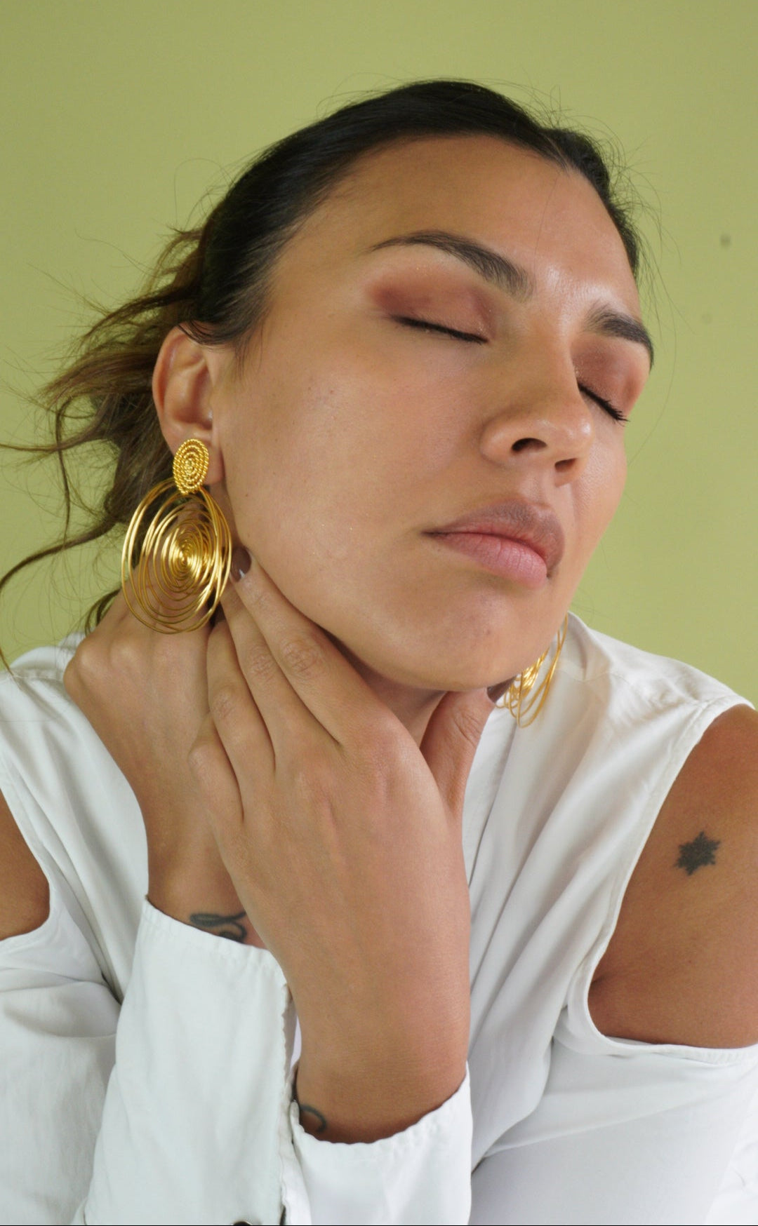 Materiales: Bronce bañado en oro, con acabado brillante y duradero.