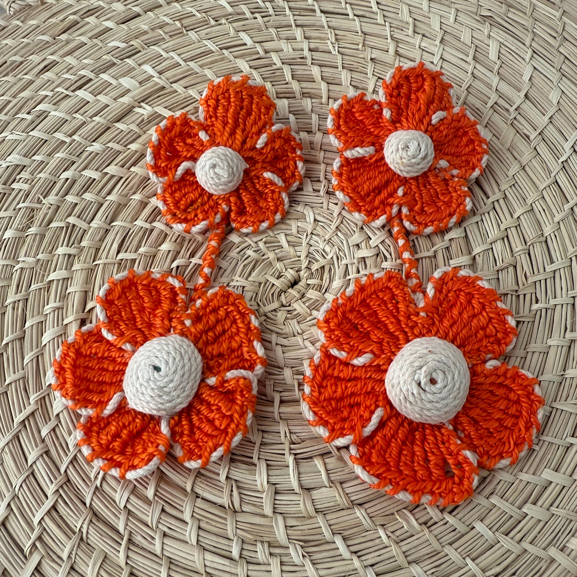 Orange woven flower earrings