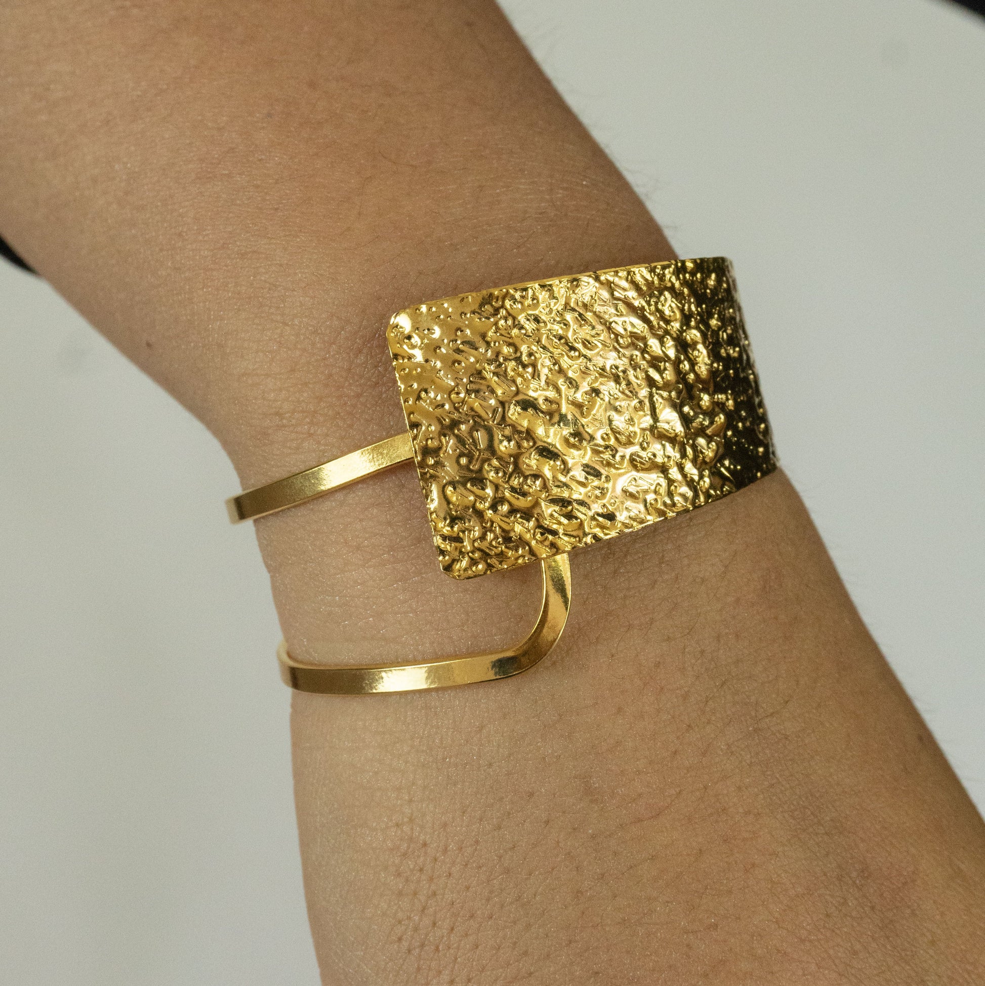 Handcrafted in Colombia with gold-plated bronze, this bracelet features a shiny and durable finish that combines elegance and authenticity. A new, modern, and meaningful piece designed by artisan women to add a touch of exclusivity to your everyday style.