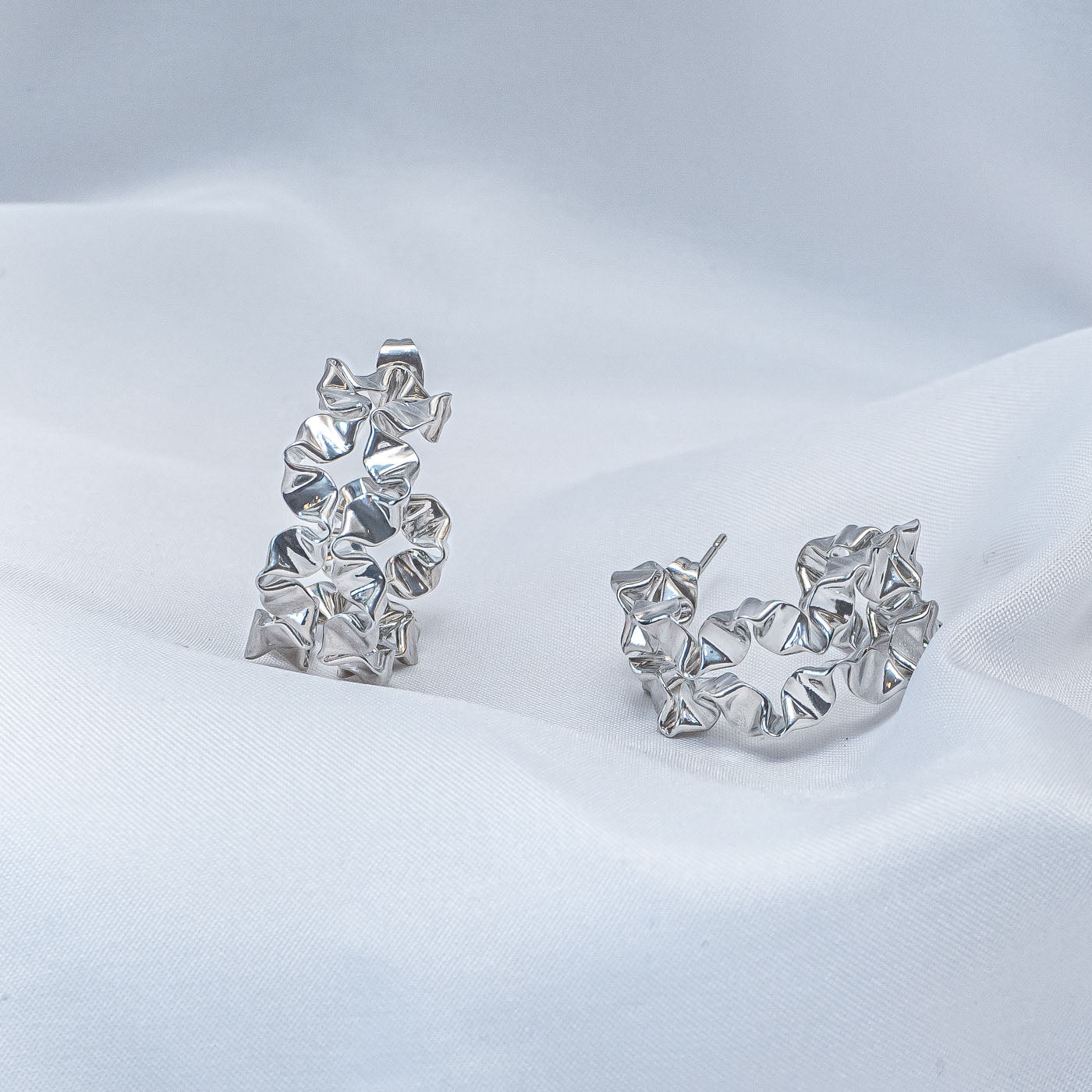 These earrings are crafted in silver-tone rhodium, featuring a bright and sophisticated finish that adds light and modern elegance to any look.