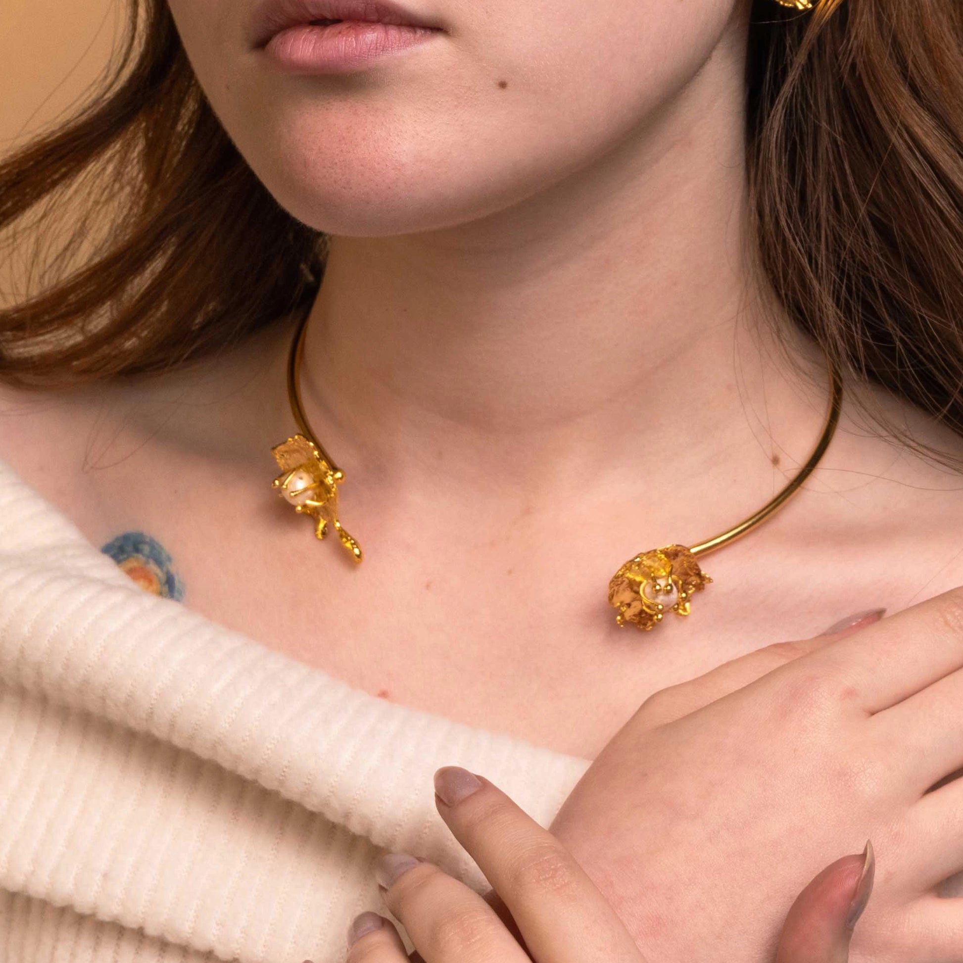 Handcrafted in Colombia with gold-plated bronze, this necklace features a shiny and durable finish that reflects both elegance and authenticity. A new, modern, and meaningful piece designed by artisan women to elevate your style with a story you can wear.