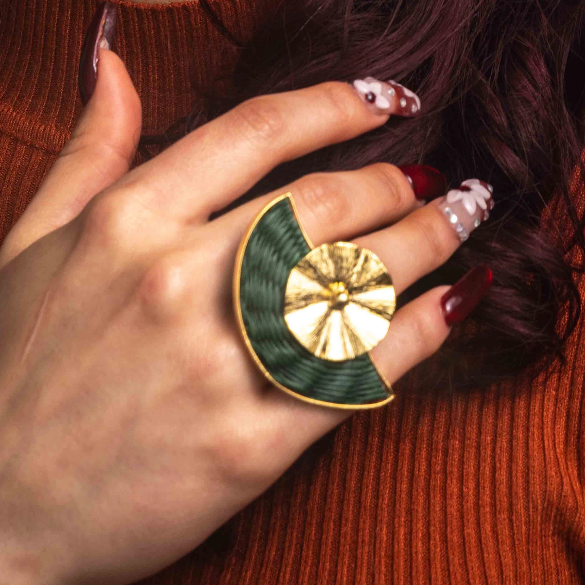 The bronze edges with gold plating frame the weaving and add a sophisticated contrast that enhances the artisanal design of each piece.