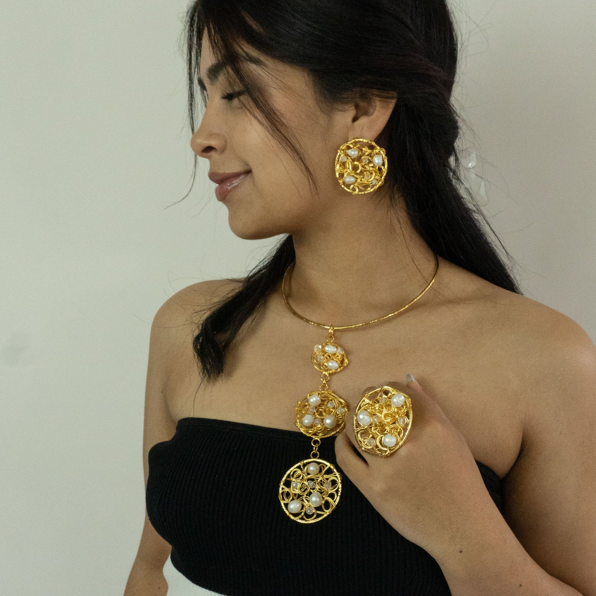 Handcrafted in Colombia with gold-plated bronze, this ring features a shiny and durable finish that unites elegance and authenticity. A new, modern, and meaningful piece designed by artisan women to complement your style with a story you can wear