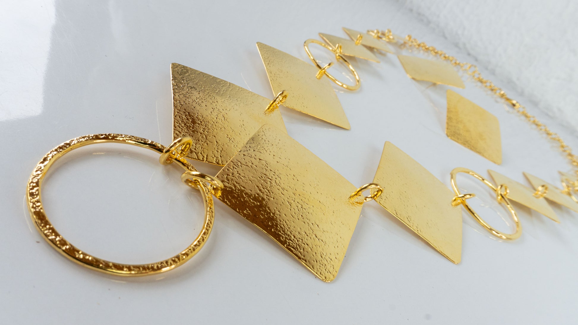Materials: Gold-plated bronze with a shiny, durable finish.